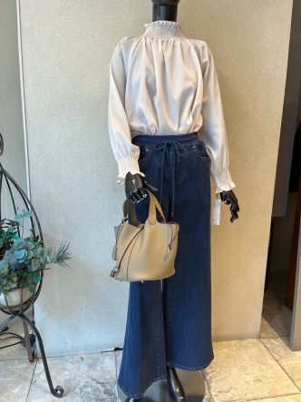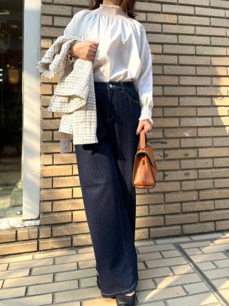 デニムは違うものを合わせておりますが、ブラウスをインにして。