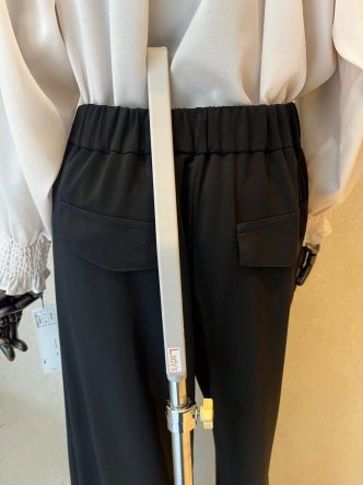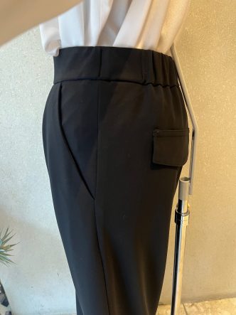 こちらはしなやかできれい目なジャージ素材のブラックパンツです。