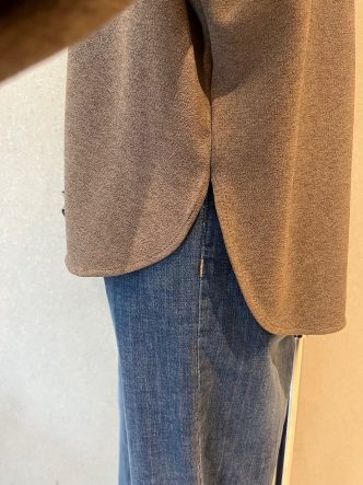 サイドにはスリット、丈は前後差があり、後ろが長めのデザインです。