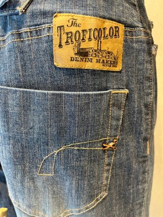 生地はtoroficolor社のストレッチインディゴ素材を使い、ブランドマークとリスペックのハサミのモチーフが付いています😉