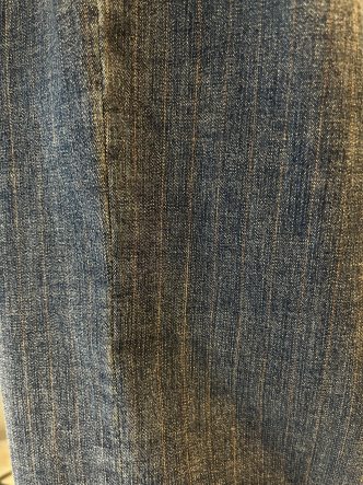 実は、よく見るとわかるのですがインディゴにピンクベージュのピンストライプが入っている珍しいデニム生地なんです。