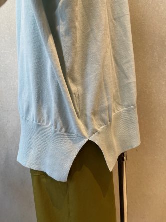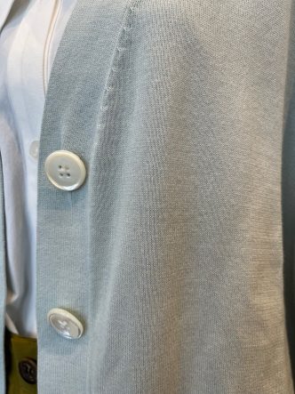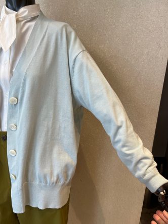 コットン100%のさらりとした上質な生地を使用した、ゆったり目のVネックカーディガンになります。