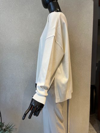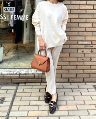 お色違いのオフホワイト、一枚で細身パンツに合わせました♪