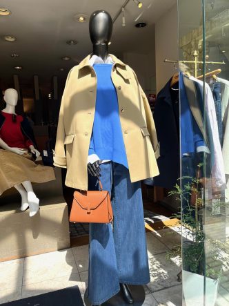 上に昨日ご紹介のネイビーのコートを羽織ってみました♪