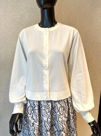 丸首で丈は少し短め、トップス使いもしやすいシンプルなカーディガンです♡