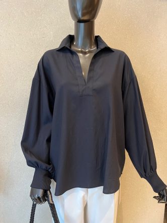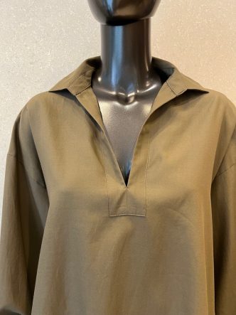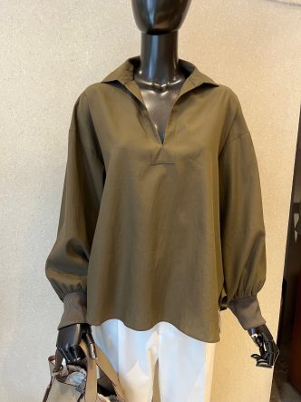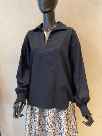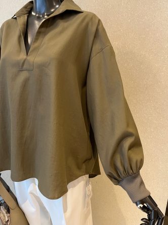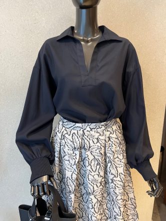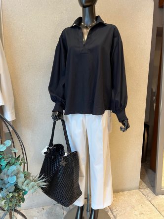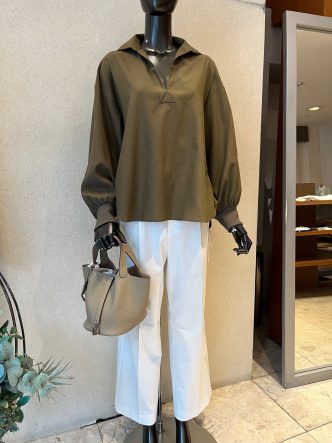 スキッパータイプのシャツブラウスになり、そのままさらっと一枚で着て頂けるデザイン。