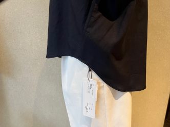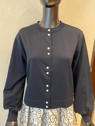 襟はV開きのスキッパータイプになり、インにキャミソールなどを入れる感じです。