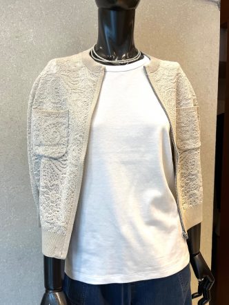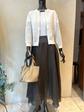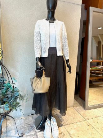レースのニットジャケット(カーディガン)をコーディネートでご紹介していきます♪