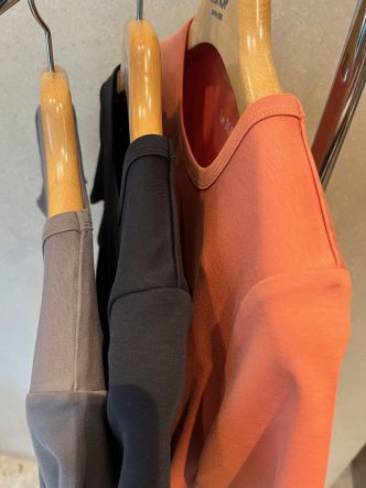 ネック回り、袖口、裾はリブ仕様になっています。