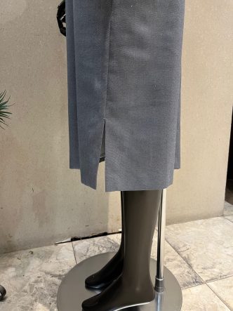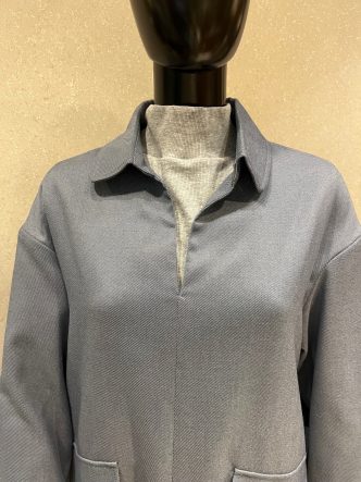 Vの開きがあるのでインにはカットソーのハイネックを入れて。