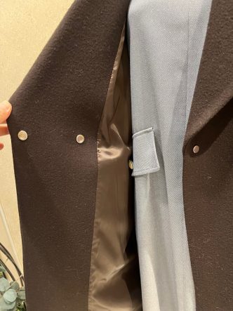 前はダブルになり、ゴールドのボタンで留めれるようになっています。