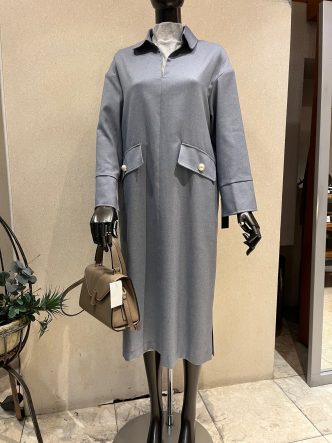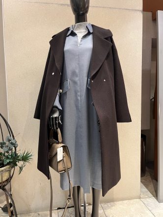 きちんと感のあるシャツワンピースにウールロングコートを合わせて♡