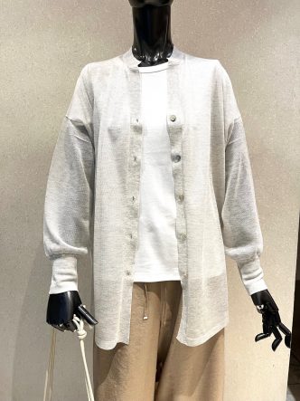 上品なシアー感で夏でも着て頂きやすく、羽織としてもプルオーバー感覚でも着回し力の高い一枚です♡
