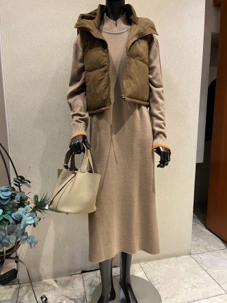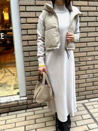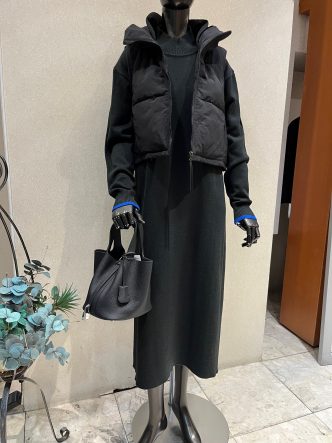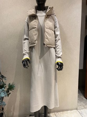 ベストは短め丈。ワンピースにバランスがいいですね😉