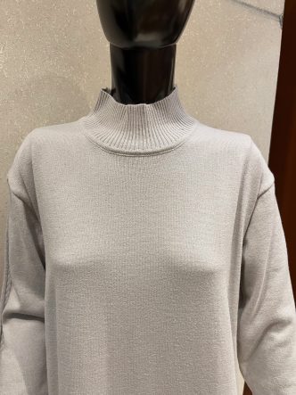 ネックはスッキリとしたハイネック。