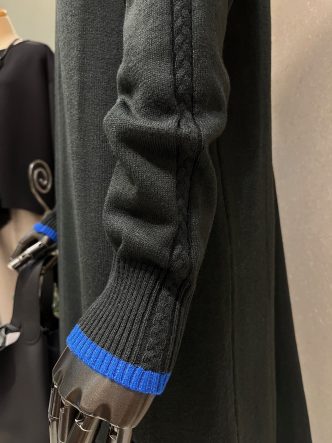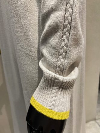 袖の横にはケーブル編みのラインが入り、袖口にはイエローのラインが入っています♡
