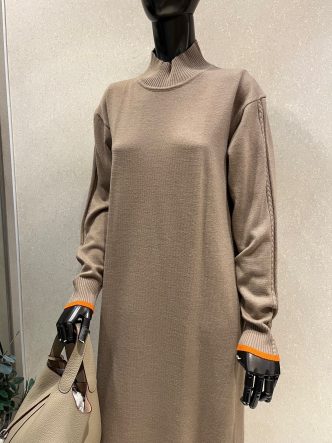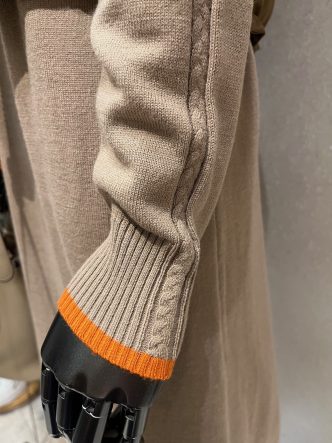 ニットワンピースの袖口のカラーはオレンジ♪