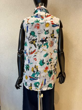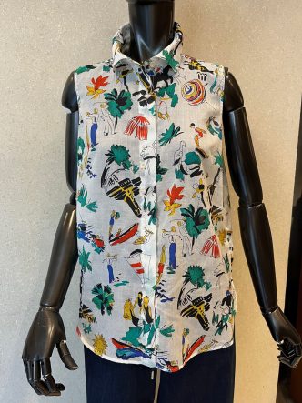 ブラウスはノースリーブのシャツ襟タイプ。