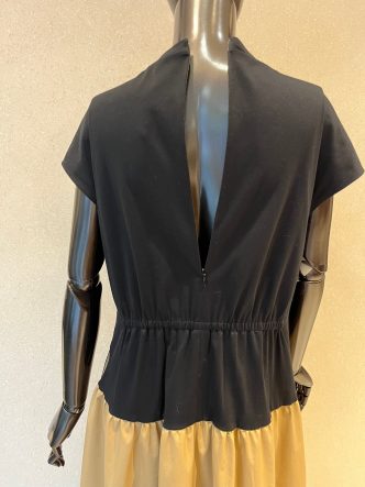後ろファスナーとウエストのゴムで脱ぎ着が出来るようになっています。