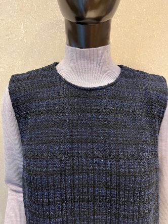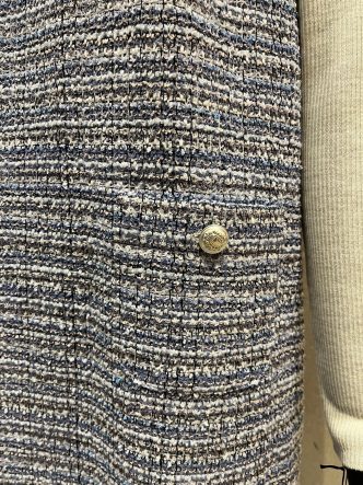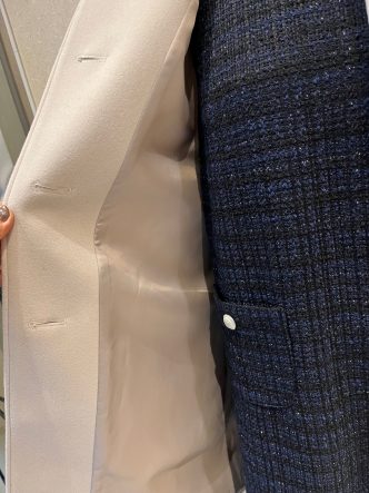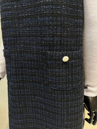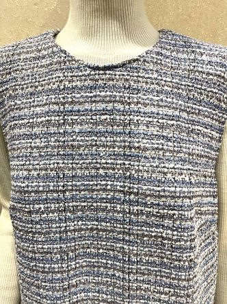 生地はブルーがメインになり、ブルーの濃淡、ピンクやオフホワイト、グレーなどの糸が織り込まれたツイードになります。