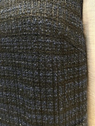 生地は、ブラックベースにネイビーの糸が織り込まれ、さらに写真では分かりにくいんですが、