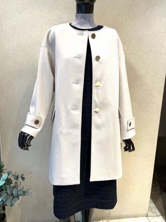 まろやかなオフホワイトが上品で、パンツやスカートに合わせてきれい目に着て頂けます。