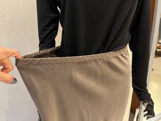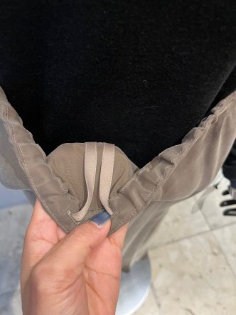 ウエストは総ゴムで楽々、内側にヒモが通っていて、こちらでもう少し絞ったりと調整して頂けます。