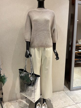 裾に向かって収まるシルエットになり、スカートにもパンツにも合わせやすいですね😉