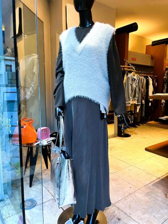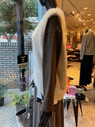 素材も季節を選ばず長く着て頂ける素材で、今は薄手、冬にふわふわとしたニットを合わせてもとても女らしい印象になります♡